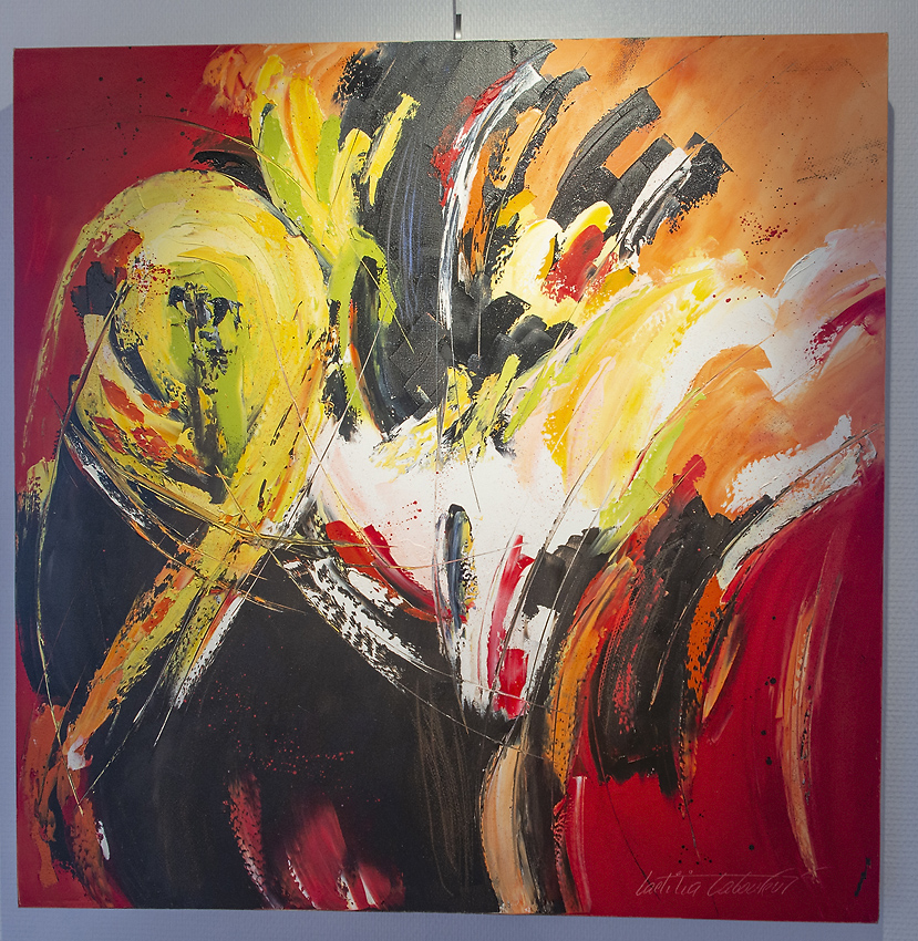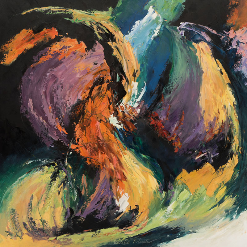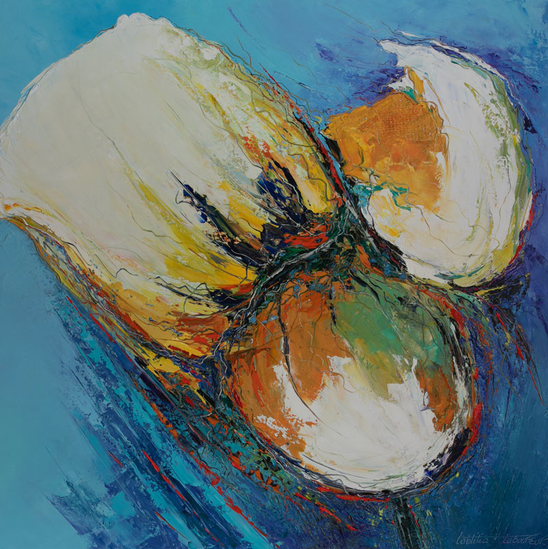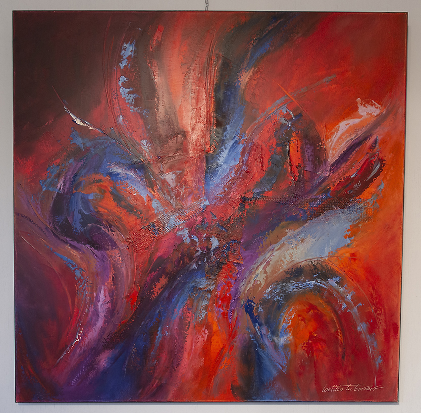 Laeticia Laboureur a été inspirée par les oeuvres de jeunesse de son père et a repris à son compte certaines techniques pour réaliser un travail radicalement contemporain, alliant graviers et autres matières à l'acrylique ou son sens inné des couleurs fait merveille.